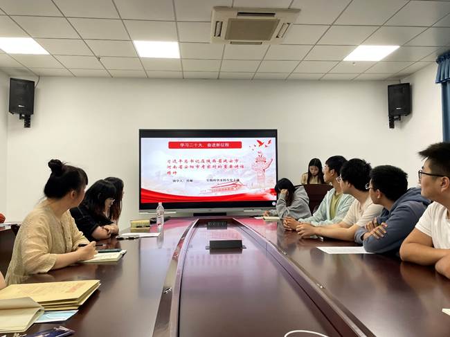 推动学习全覆盖。将党的二十大精神纳入院党委会第一议题及时跟进学习,作为理论学习中心组重点内容开展专题研讨。把学习贯彻习近平新时代中国特色社会主义思想和党的二十大精神作为党组织理论学习“第一内容”、党员学习“第一任务”,贯穿党支部“三会一课”等党员日常教育全过程。在学生中积极开展学习活动,利用主题班会、主题党日团日活动等学习形式,推动学习全覆盖。