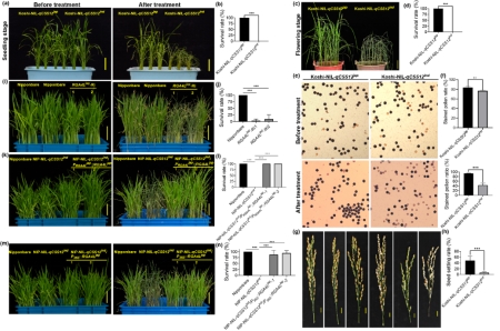 2025年8月6日,太阳集团tyc234cc罗继景教授课题组及崖州湾国家实验室李家洋院士团队合作研究论文“Natural variation of a specific NLR gene RGA4L confers strong chilling tolerance in rice”在国际知名杂志Plant Biotechnology Journal在线发表。该研究成功从粳稻品种Koshihikari(越光)克隆了高效应的水稻耐冷性基因Disease Resistance Gene Analog 4-Like(RGA4L),该基因编码一个特异调控非生物胁迫抗性的NLR蛋白,可显著提高水稻苗期、分蘖期和开花期的耐冷性;同时该研究揭示了RGA4L通过与OsHSP90和OsLEA5的相互作用共同调控水稻耐冷。将RGA4Ljap导入不同籼稻品种(NJ11/HHZ/556)时,可以在提高水稻耐冷性的同时对产量不产生不良影响。这一重要发现不仅丰富了水稻耐冷的调控网络,完善了相关理论体系,更为水稻低温抗性育种提供了宝贵的基因资源,对低温胁迫下稳定水稻产量有重要意义。