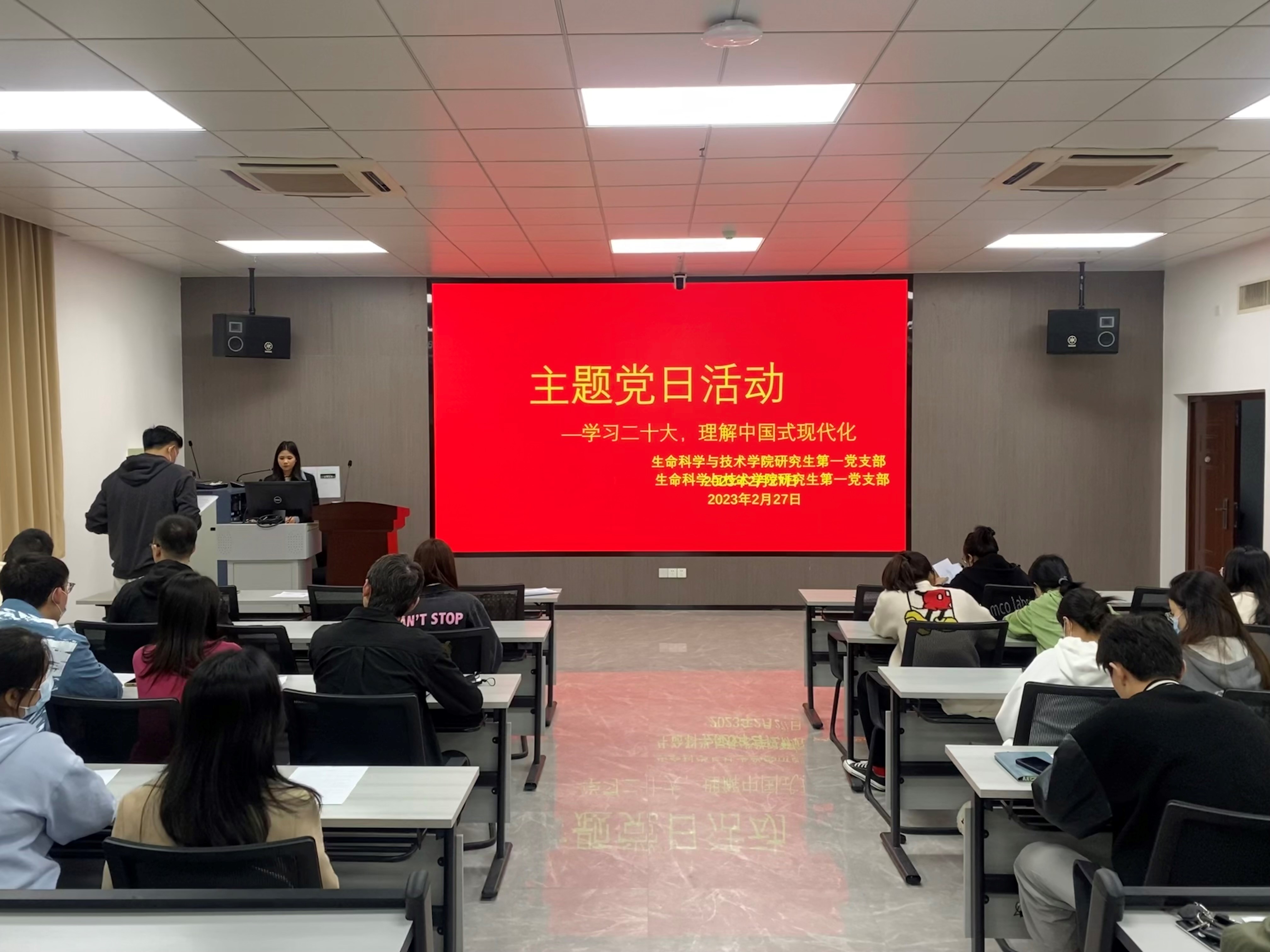 研究生第一党支部组织全体党员集中收看《习近平在学习贯彻党的二十大精神研讨班开班式上发表重要讲话强调正确理解和大力推进中国式现代化》相关视频。发表各自感想并互相交流学习心得,表示要深刻领悟“两个确立”的决定性意义,牢记“国之大者”,增强“四个意识”、坚定“四个自信”、做到“两个维护”,切实把思想和行动统一到习近平总书记重要讲话精神上来。