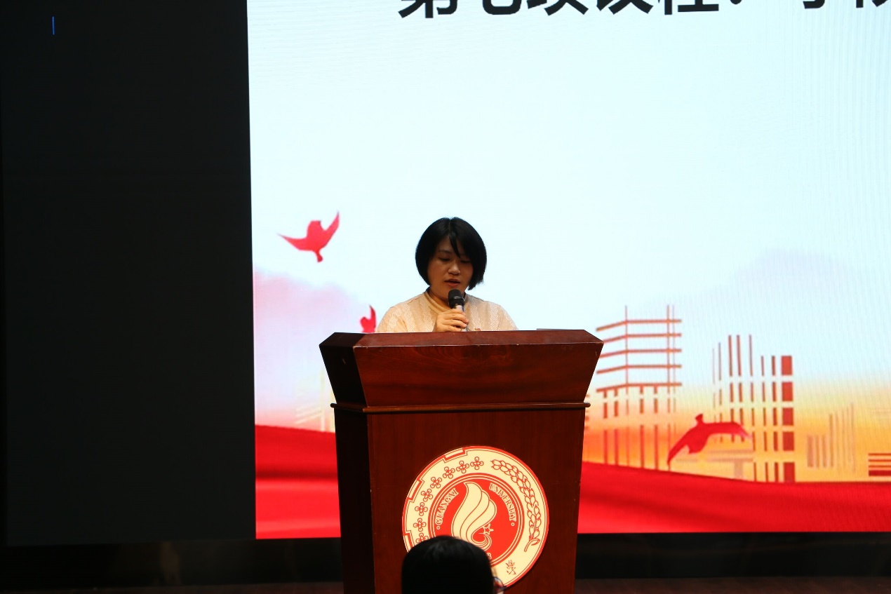 曾海艳老师讲话结束后,会议进入第二阶段。我院第十九届研究生会执行主席黄椿苓作题为《牢记青年使命,肩负时代担当,为学院发展与建设贡献青春力量》的工作报告。报告对上一届研究生会的工作成绩与经验、存在问题与不足做了全面总结,并提出了今后一段时期工作的总体思路和努力方向。