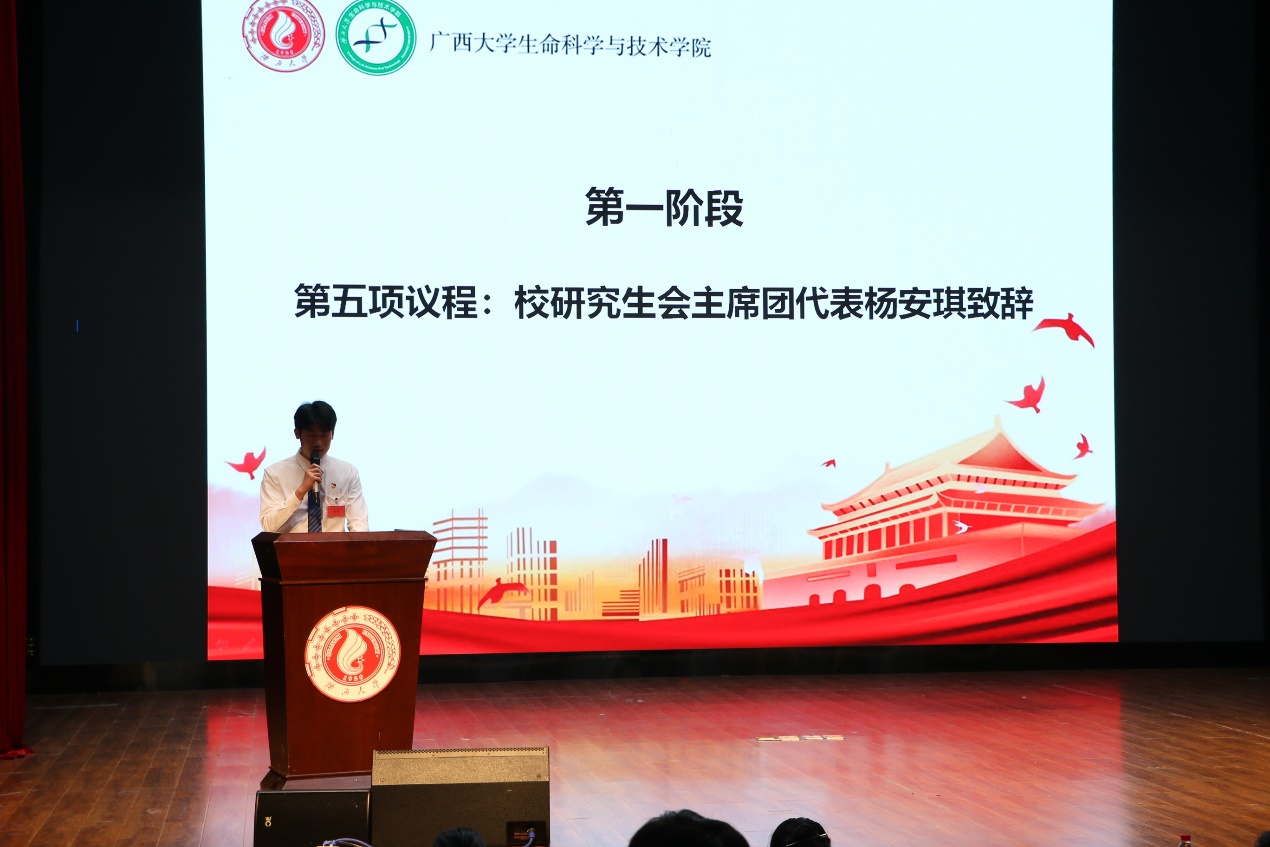 校研究生会主席团代表杨安琪、文学院研究生会代表罗佳祺分别上台致词,表达了他们对本次学生代表大会的竞选者寄予厚望,以及对本此活动取得圆满完成的殷切希望。