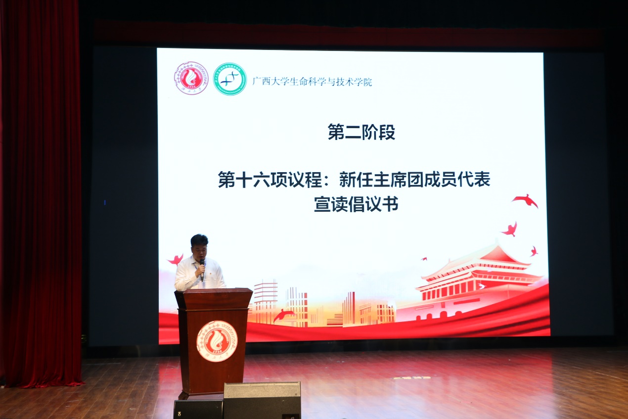 我院第二十届研究生会主席团候选人依次登台自我介绍。本着“公平、公正、公开”的原则,各位代表依次投票,选举产生了太阳成tyc234cc第二十届研究生会主席团:尚宁立,黄申申,袁嗣隆。新当选的第二十届研究生会主席团成员尚宁立作大会倡议发言。