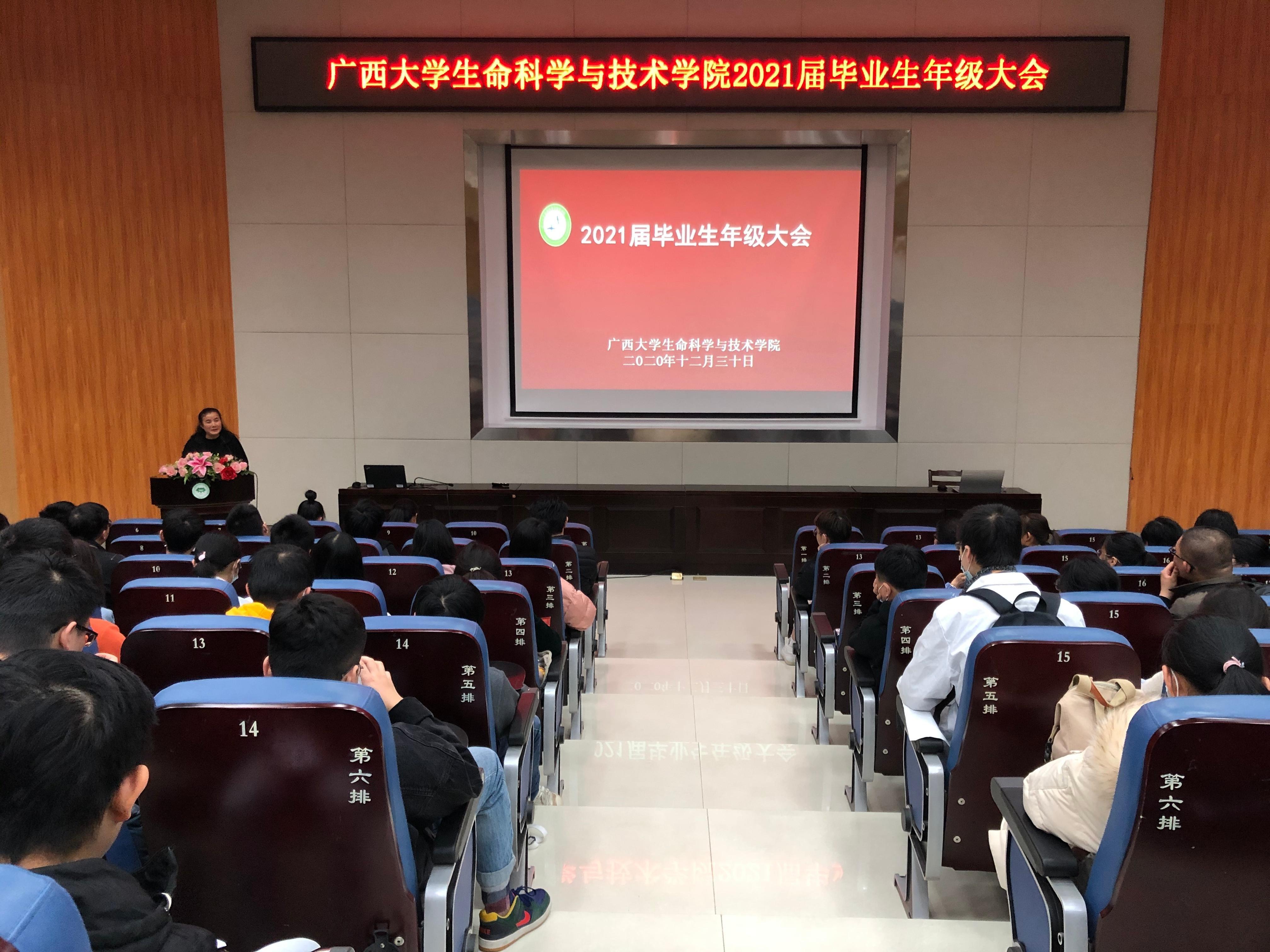 2020年12月30日下午,太阳成tyc234cc2021届毕业生大会在学院报告厅举行。学院党委副书记曾海艳老师、学工组全体老师以及即将毕业的全体2021届博士研究生、硕士研究生及本科生参加本次大会。曾海艳副书记在会上围绕就业情况、疫情对就业影响、如何应对影响以及对毕业生的要求四方面对毕业生就业进行了动员。