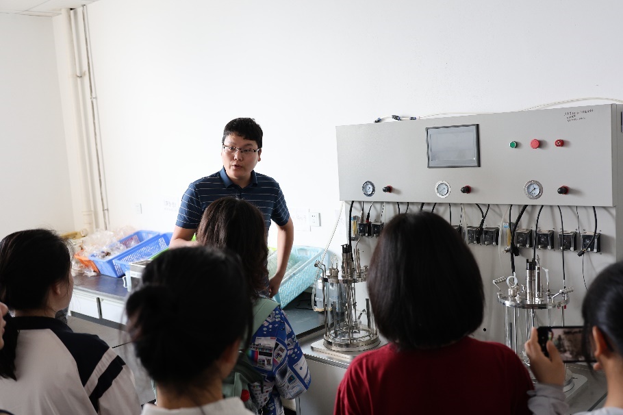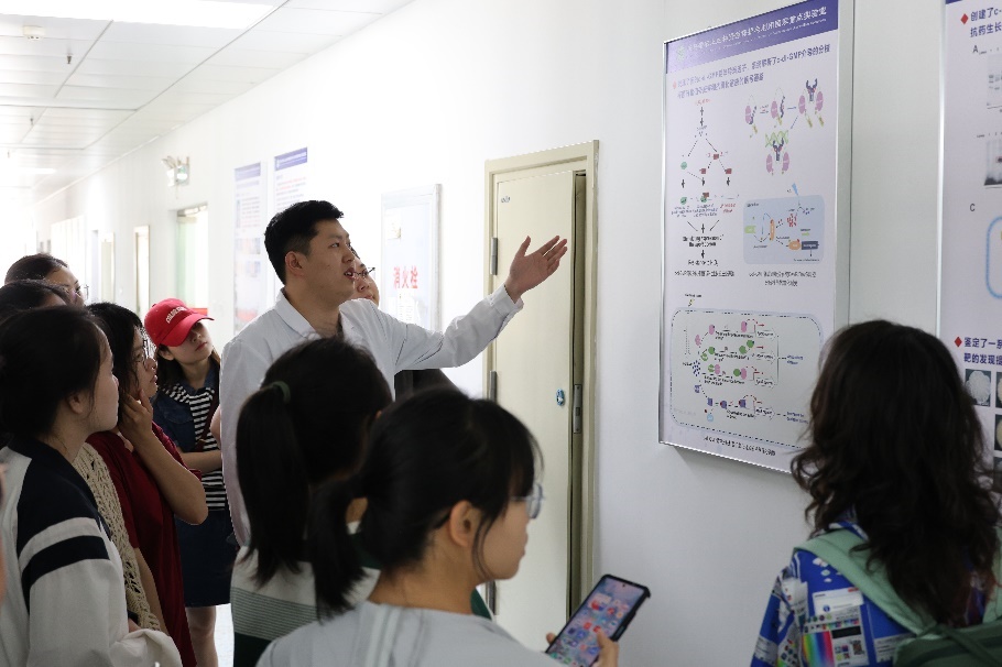 在生态与生物资源开发利用实验室,博士研究生文洛垚详细讲解了实验室针对生态环境问题所进行的研究进展,涉及废水处理、微藻培养、亚热带特殊生物资源比如甲基营养菌和喀斯特优势酵母等的开发利用,积极响应国家保护生态文明、保障国民生命健康、保持国家经济发展和保卫国门生物安全的重要战略需要。