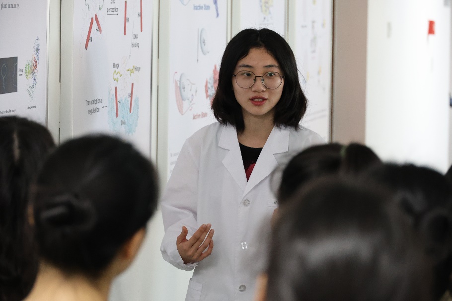 接着,同学们来到了结构生物学实验室。结构生物学课题组的博士研究生马劲雪向大家介绍了结构生物学实验室的主要研究内容是使用结构生物学方法,解析植物免疫与致病过程中关键蛋白质的三维结构并揭示它们的工作机理,为提高重要作物的抗病能力、理性的药物设计以及新药研发提供理论依据和候选靶标。