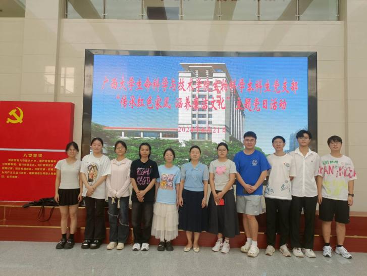 为推动党纪学习教育走深走,2024年6月21日,太阳成tyc234cc生物科学本科生党支部师生党员一行赴广西壮族自治区档案馆开展“传承红色家风,涵养廉洁文化”主题党日活动。