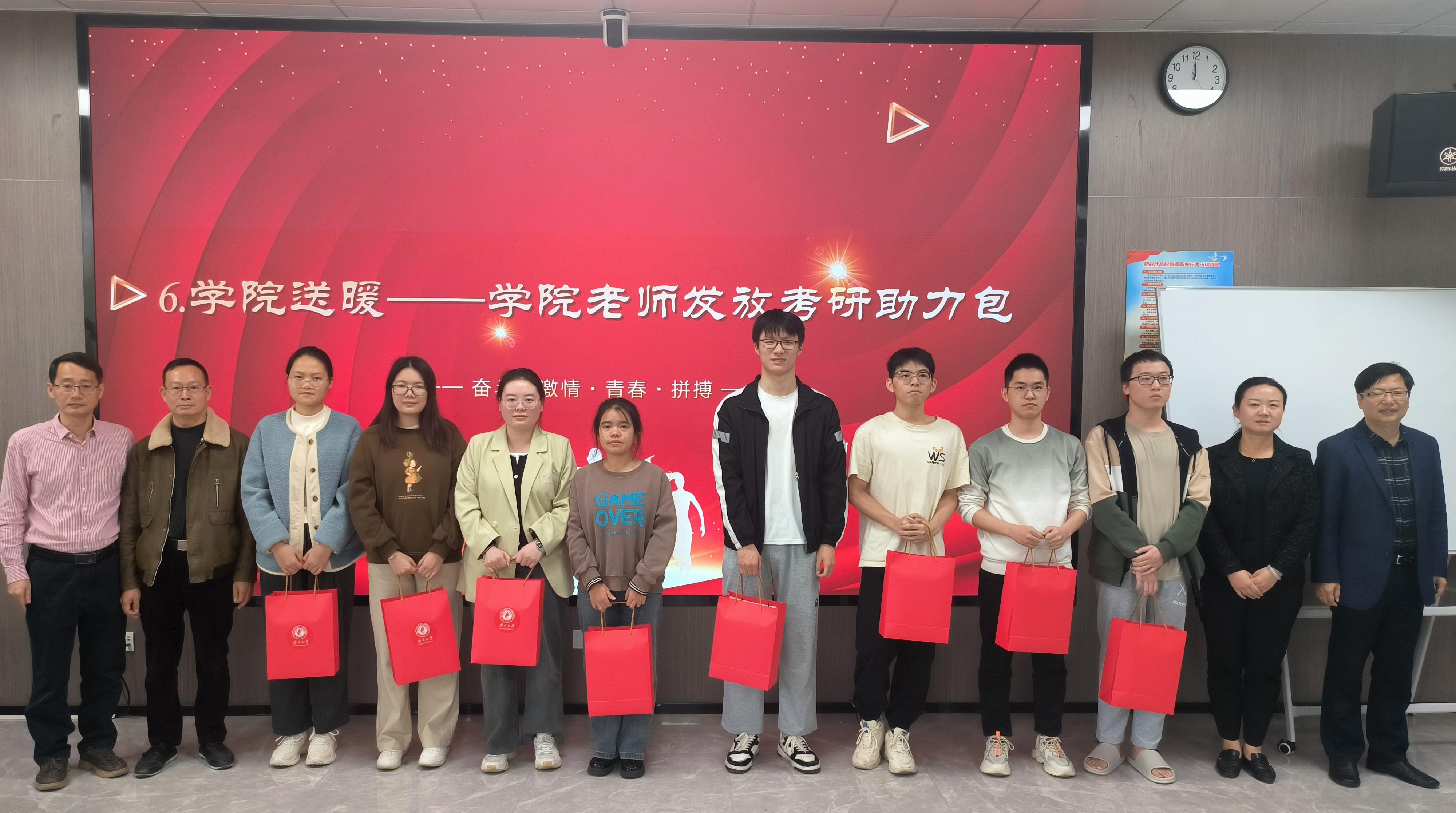 最后,学院领导老师为考研学子发放考研助力包,希望考研学生不负所望、踔厉奋发、勇毅前行、筑梦未来,奔赴心之所向。