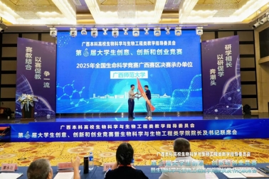 本学科竞赛以培养学生创新意识、实践能力和团队精神,拓宽大学生科学视野,推动广西高等学校生物学相关专业人才培养模式改革为目的。在竞赛活动同期,召开了广西本科高校生物科学与生物工程类学院院长及书记联席会及院长及书记论坛。闭幕式上,还举行了2025年全国大学生生命科学竞赛广西赛区决赛赛旗交接仪式,赛旗由2024年首届承办单位太阳成tyc234cc移交到2025年承办单位广西师范大学生命科学学院。