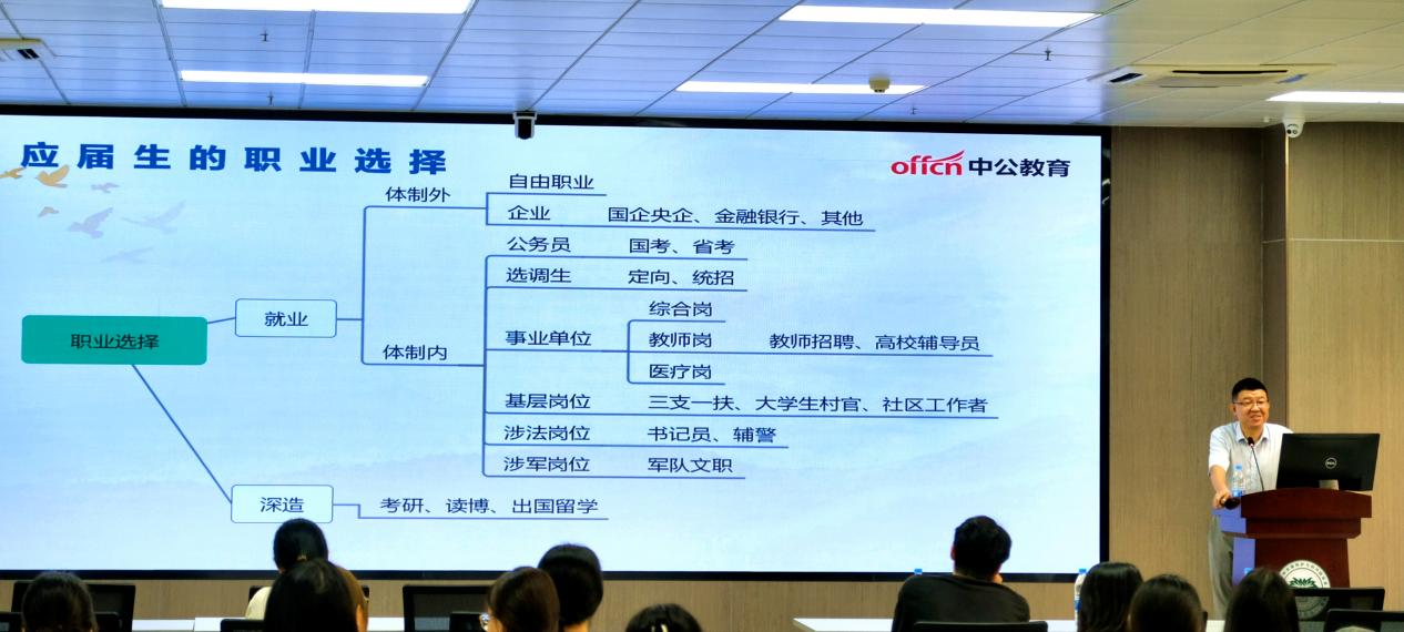 2024届生物科学专业本科生徐天峰校友,从自身工作和生活经历出发,向同学们分享自己的报考经历以及相关的备考经验,鼓励大家踊跃报名,并以现场解答真题的形式让同学们对定向选调生考试有了更为真切的感受。