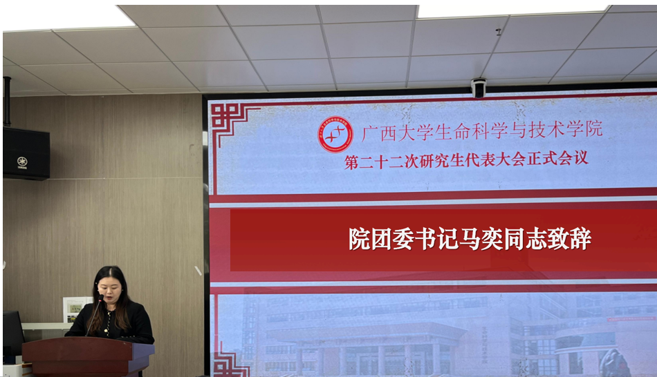 院团委书记马奕在会上致辞,她表示,我院第二十一届研究生会圆满完成了上一学年的各项工作任务,取得了良好成效,希望新一届研究生会全体成员能够继承和发扬优良传统,团结奋斗,锐意进取,创新工作方法,不断推进学生组织改革,提升服务实效,努力把研究生会工作推向新的高度。