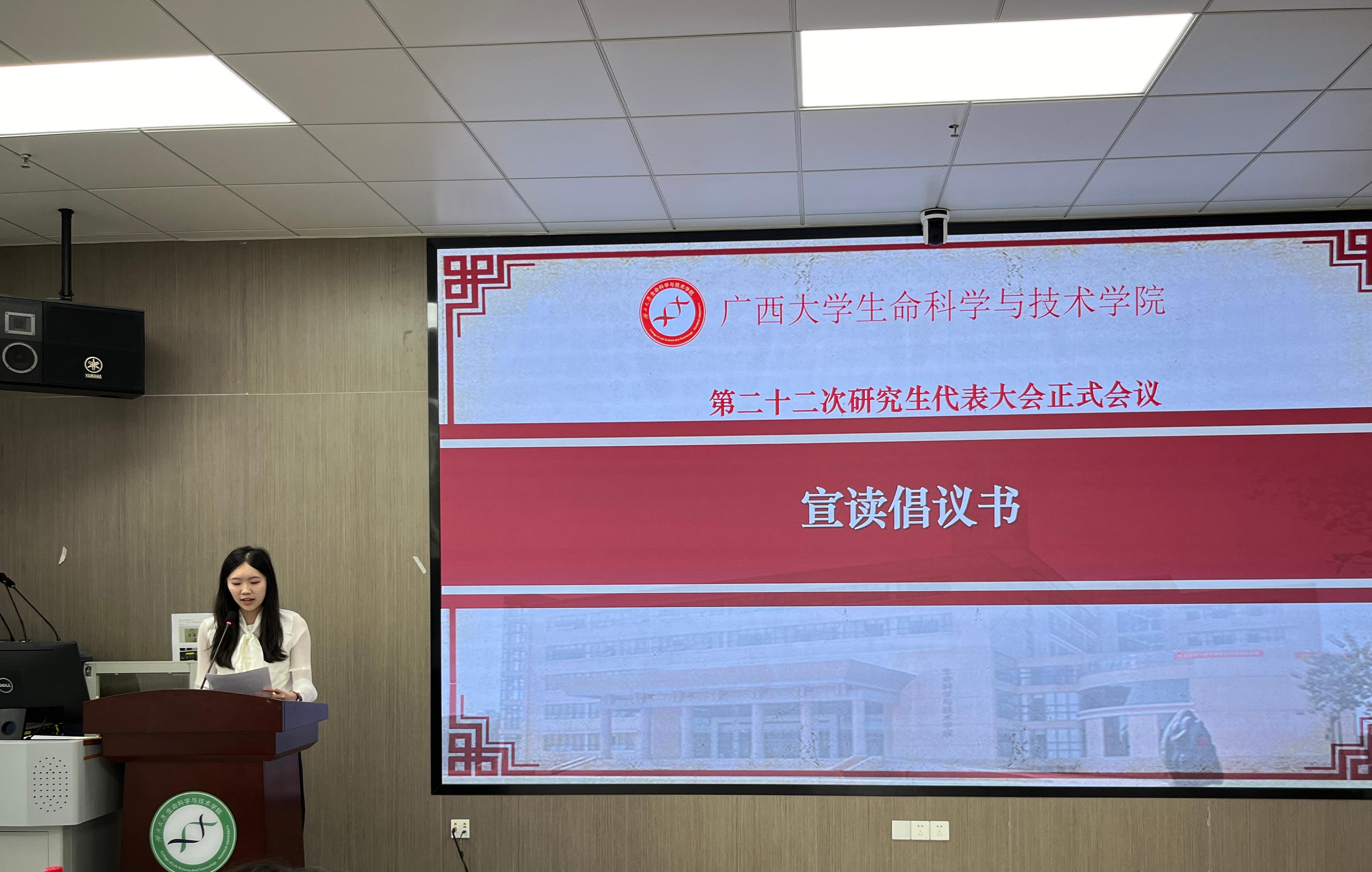 第二十二届研究生会主席团成员卢晓敏宣读了倡议书。她倡议,全院研究生要在学思践悟中坚定信念,在科研创新中勇于探索,在服务师生中增长才干,努力成长为具有家国情怀、全球视野的生物科学拔尖创新人才,为强国建设、民族复兴贡献青春力量。
