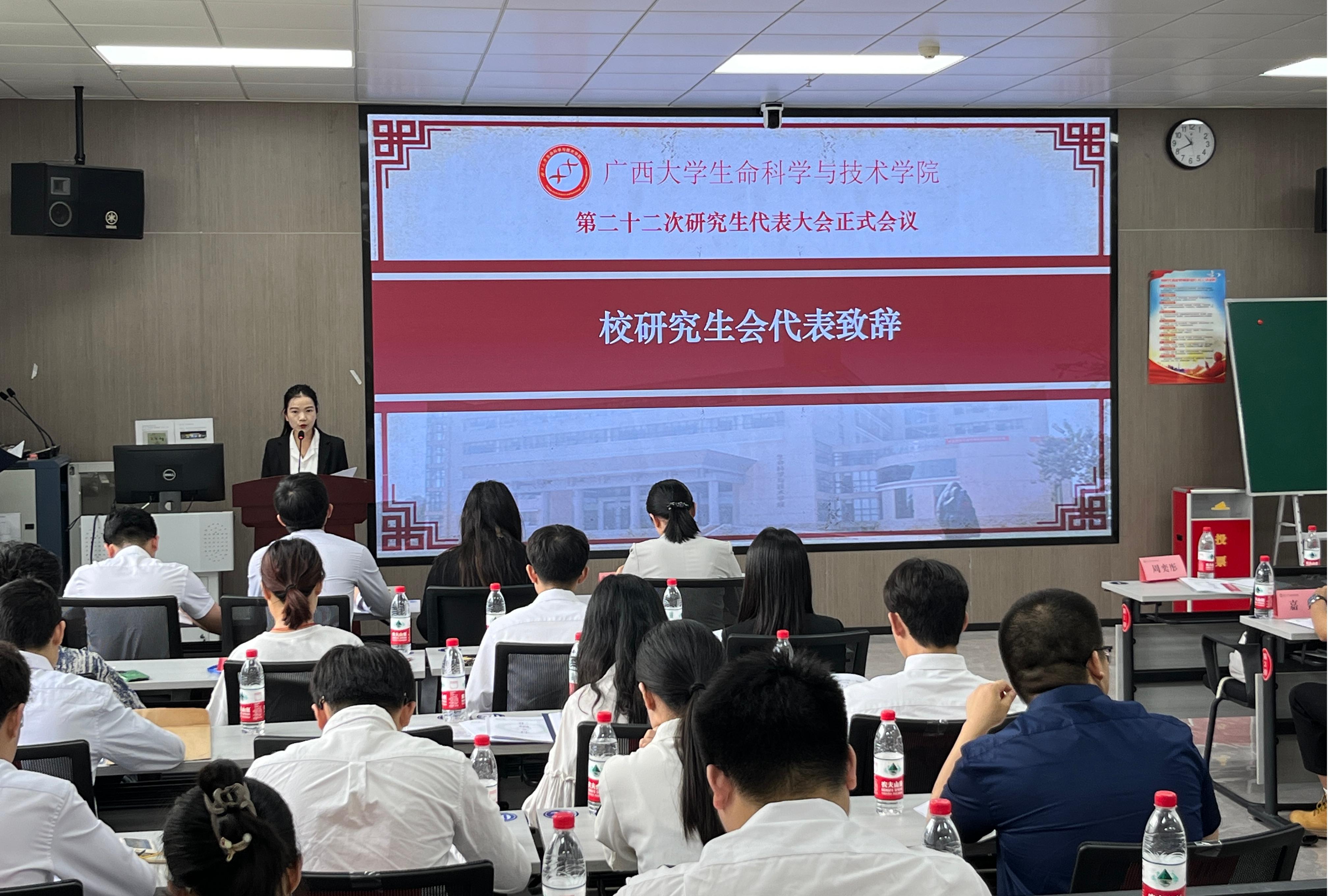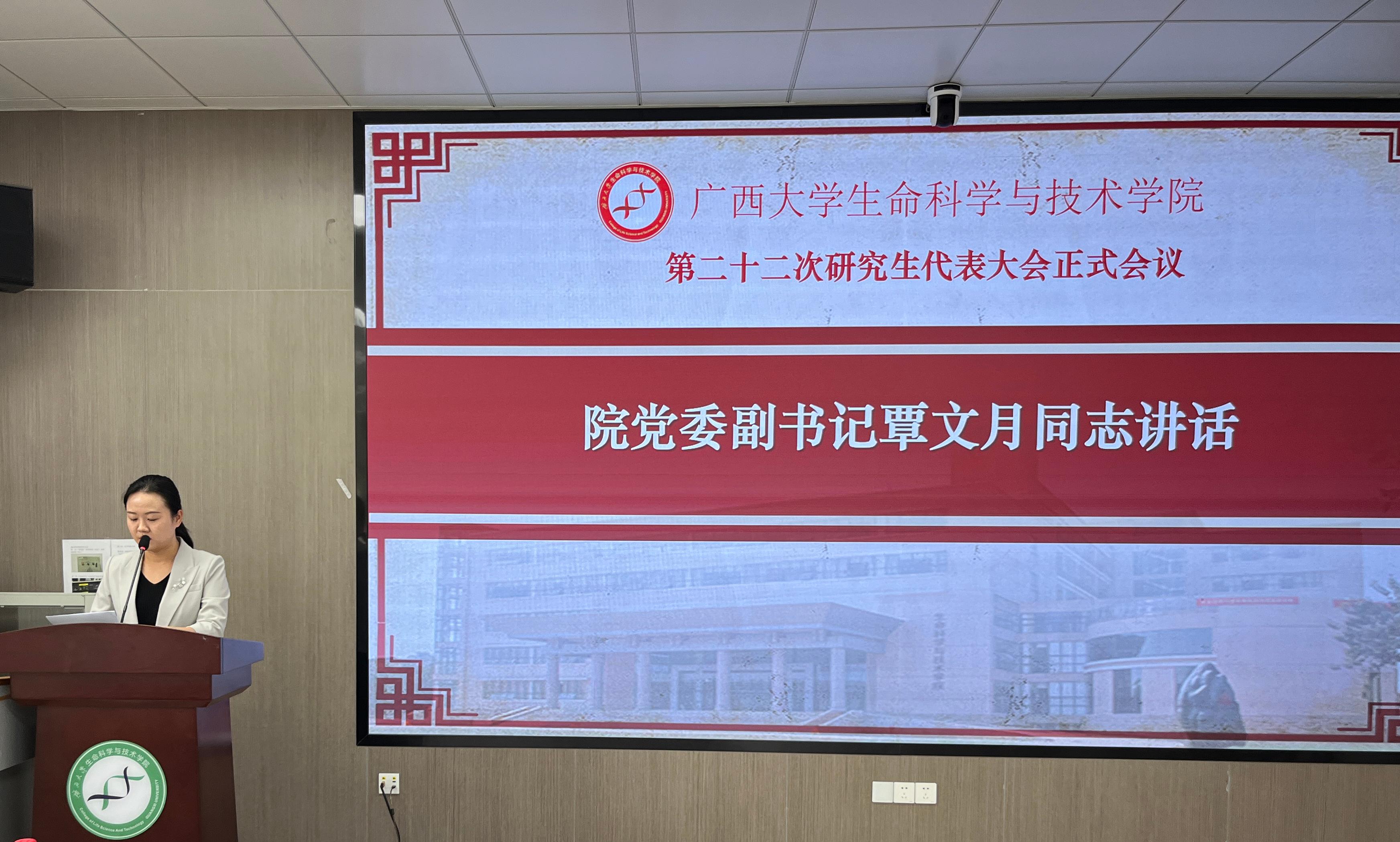覃文月副书记在大会上讲话,充分肯定了我院研究生会一年来取得的成绩,并对新一届研究生会及全体学生干部提出三点希望和要求:一是要坚定理想信念,团结带领青年研究生听党话、跟党走,做有理想、敢担当、能吃苦、肯奋斗的新时代好青年;二是要苦练过硬本领,勇攀科学高峰,把认认真真学习、踏踏实实工作和践行报国强国大志向结合起来,做挺膺担当奋斗者;三是要加强自身建设,做好示范表率,发挥好桥梁纽带作用,竭诚为同学们办实事、办好事、解难事。