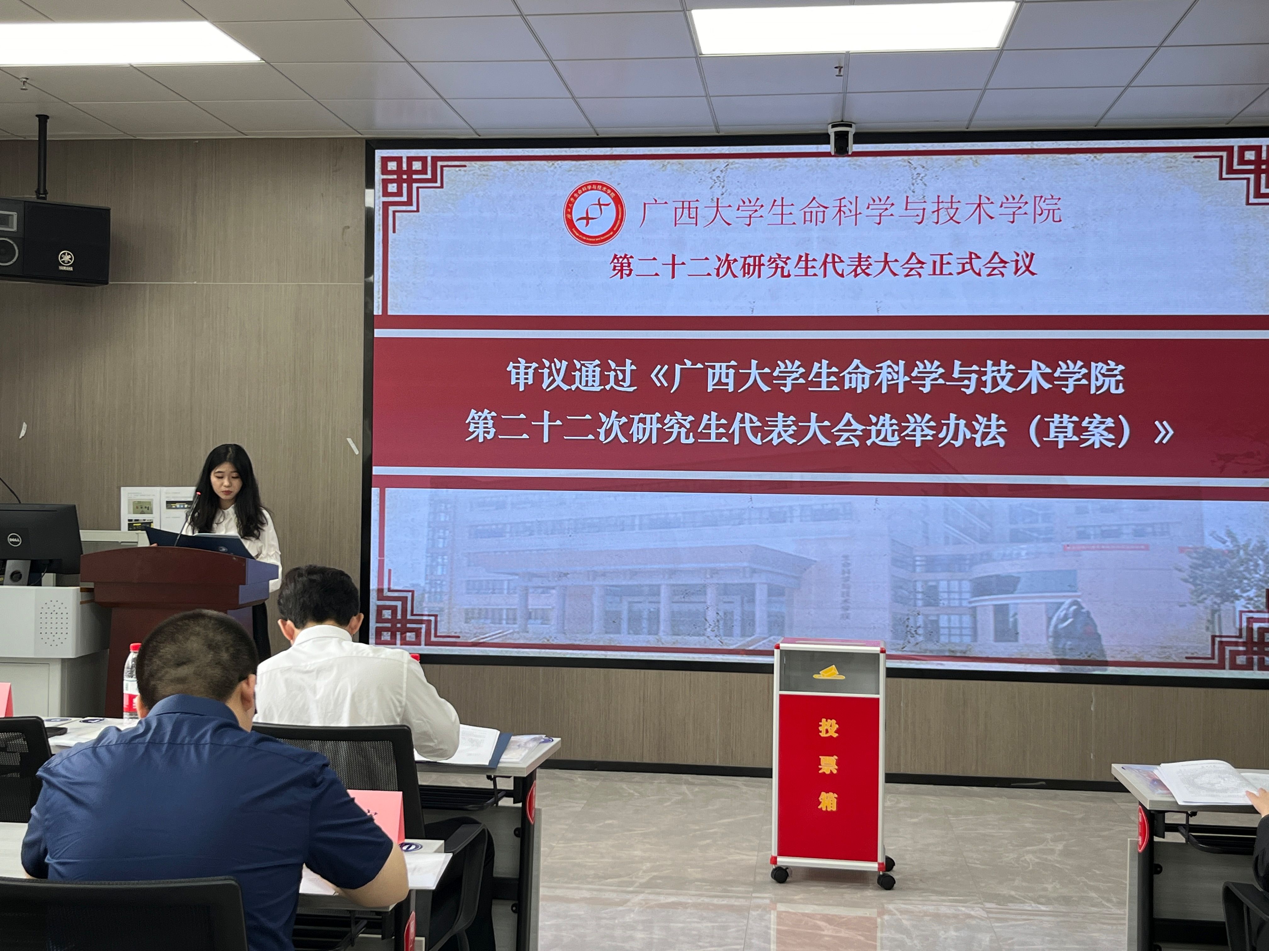 10月29日下午,我院第二十二次研究生代表大会正式会议在学院106室顺利召开。学院党委副书记、纪委书记覃文月,团委书记马奕,学工组辅导员贺超、关家运,太阳集团tyc234cc研究生会代表,兄弟学院研究生会代表以及我院各班级代表出席本次大会。大会由学院第二十一届研究生会执行主席李晓玉主持。